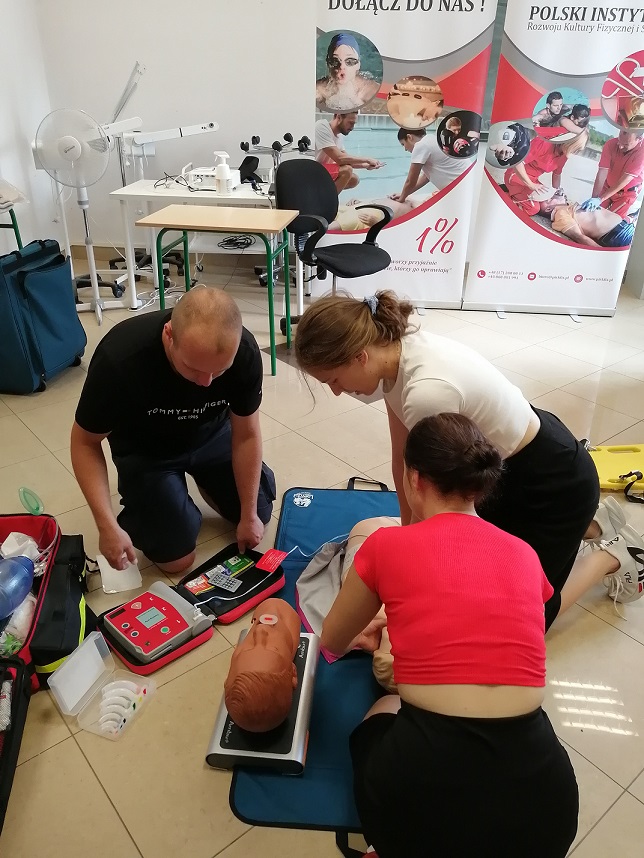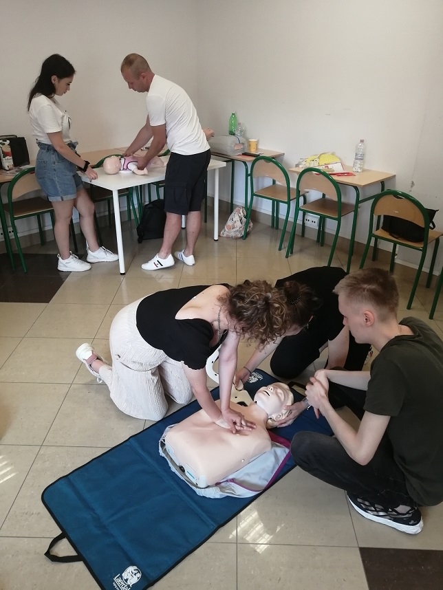 W trakcie zajęć uczestnicy zapoznali się m. in. z procedurami udzielania kwalifikowanej pierwszej pomocy, resuscytacją krążeniowo-oddechową, poznali zasady postępowania z osobą nieprzytomną. Zajęcia prowadzone były z wykorzystaniem fantomów oraz defibrylatora AED. Kursy zakończyły się egzaminem praktycznym i teoretycznym złożonym przed komisją egzaminacyjną. Dla wszystkich uczestników egzaminacyjne zmagania zakończyły się wynikiem pozytywnym.